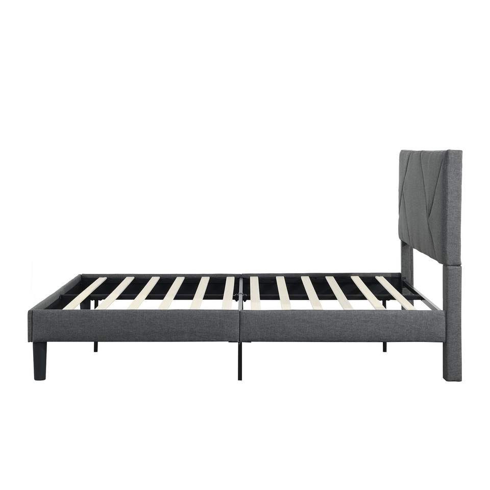 Queen Size Gray Upholstered Platform Bed Frame Strong Wood Slat Support Easy Assembly No Box Spring Needed Mattress Foundation
