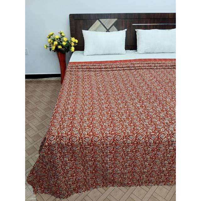 Queen Size Gudari Quilt Handmade Bohemian Kantha Quilt Floral Embroidered Reversible Bedspread Washable Indian Cotton Hotel