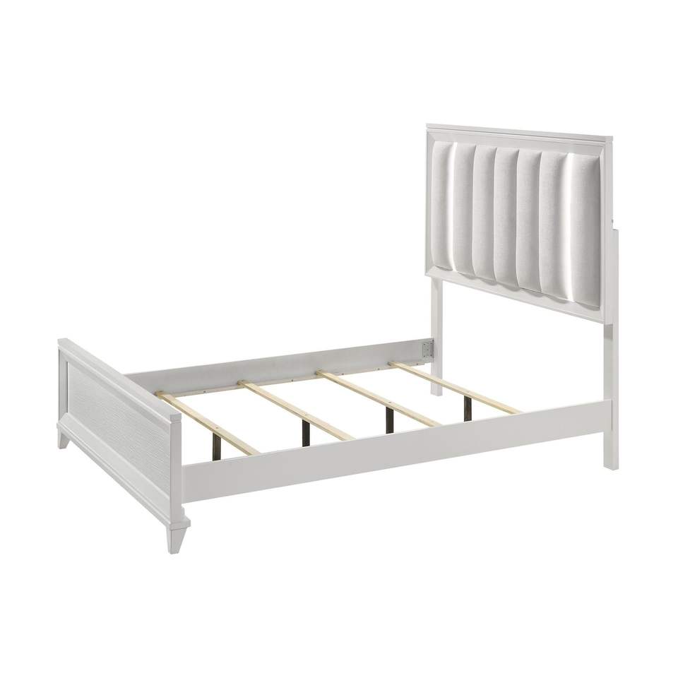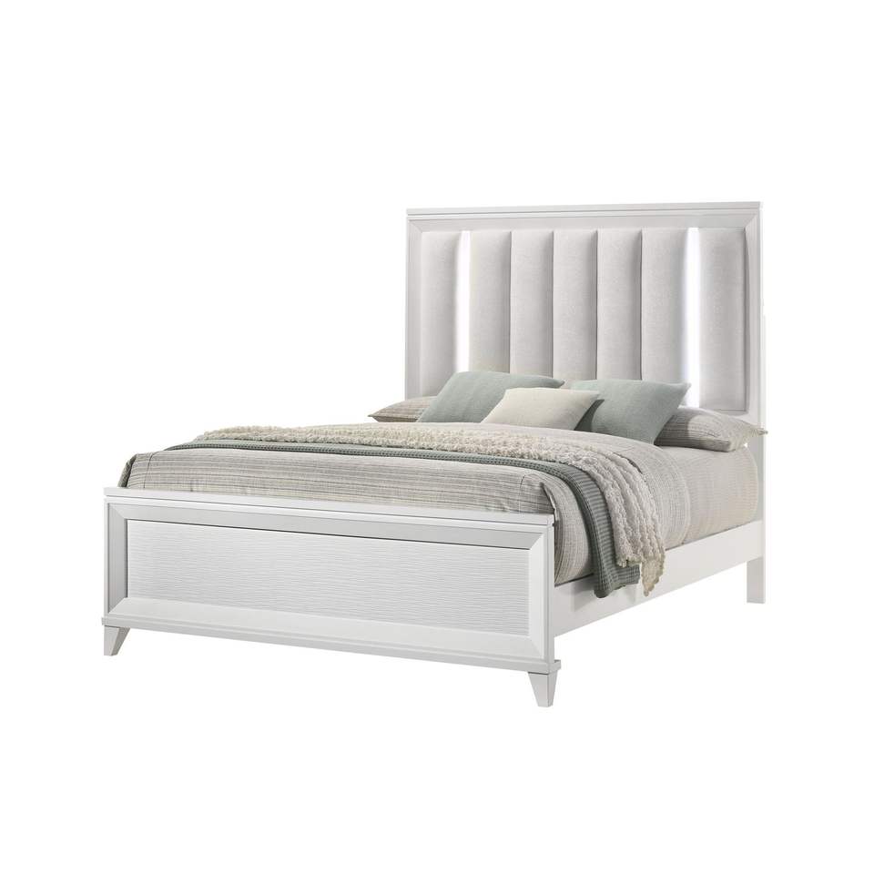 Queen Size LED Light Linen Look Fabric Upholstered Headboard Panel Bed 1pc Solid Wood Wooden Bedroom Furniture Upholstered Beds