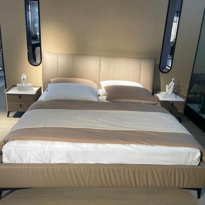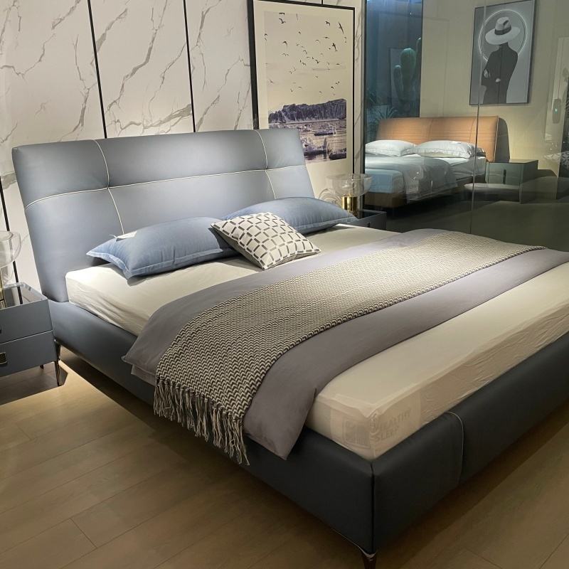 Queen Size Luxury Minimalist Modern Bed King Size Genuine Leather Upholstered Beds