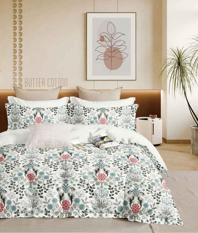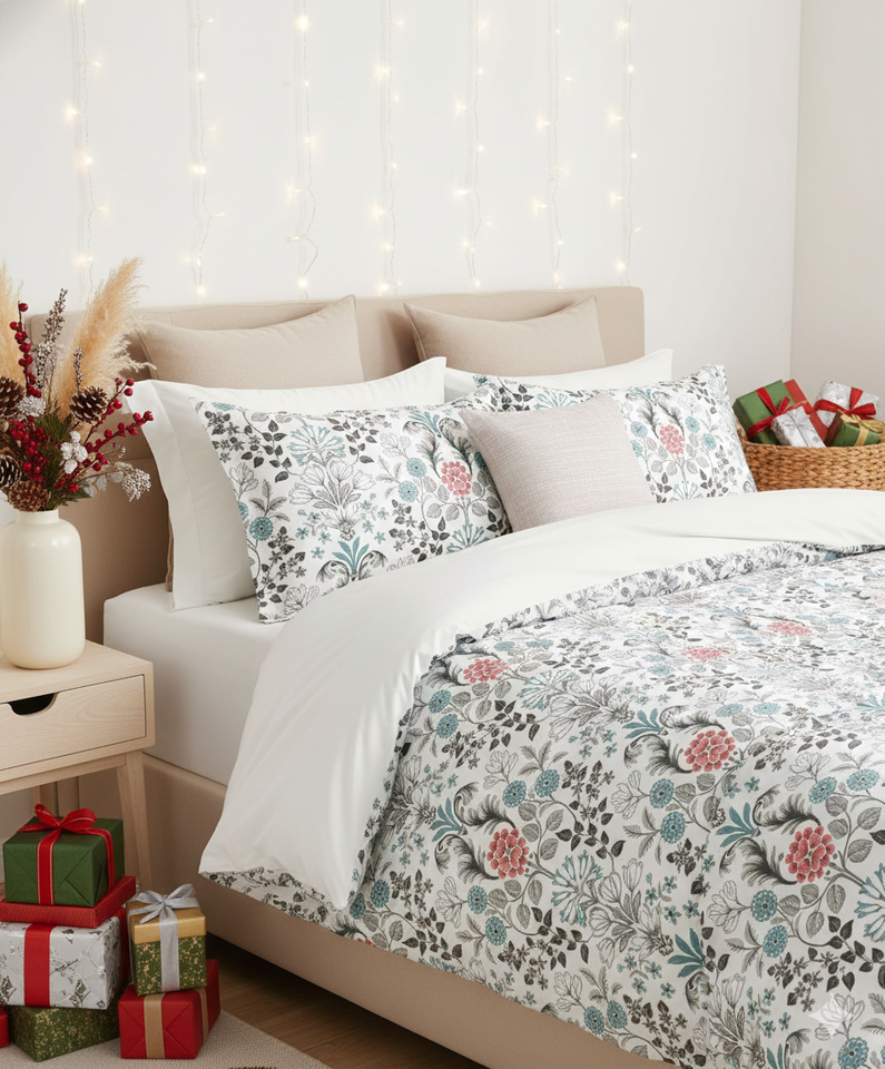 Queen Size Modern Christmas Woven Floral Bedding Set Super Soft 4-Piece Collection 2 Pillow Covers Washed Cotton Polyester