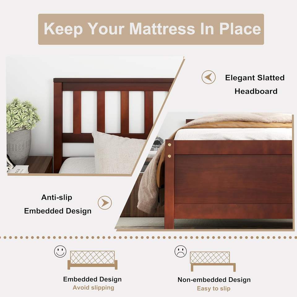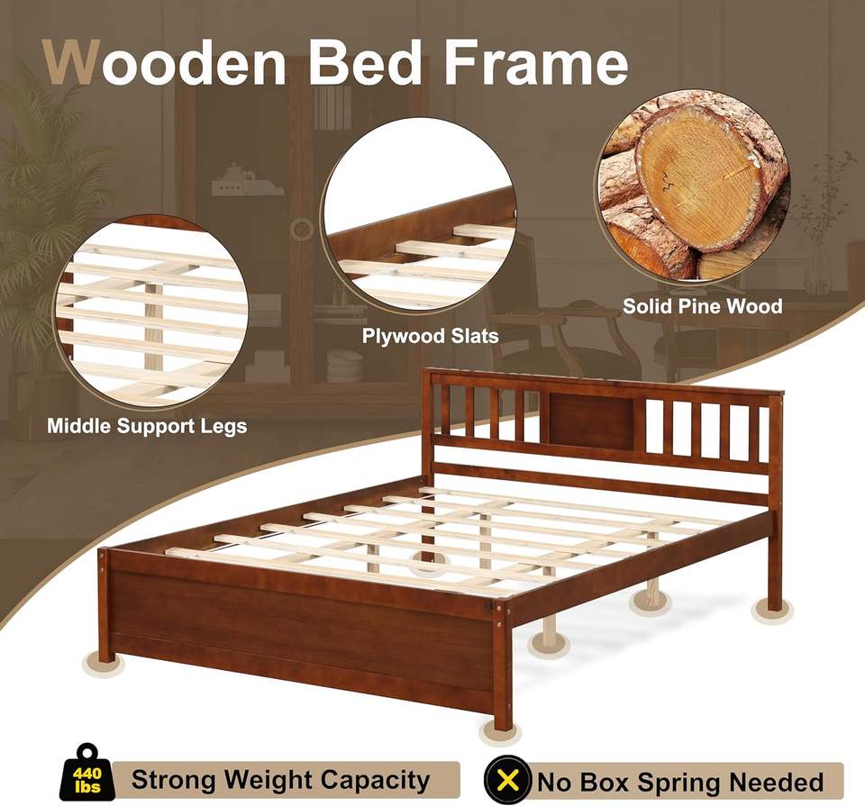 Queen Solid Pine Wood Durable Platform Bed Frame Headboard Mattress Foundation Storage Traditional Easy Assembly No Box Spring