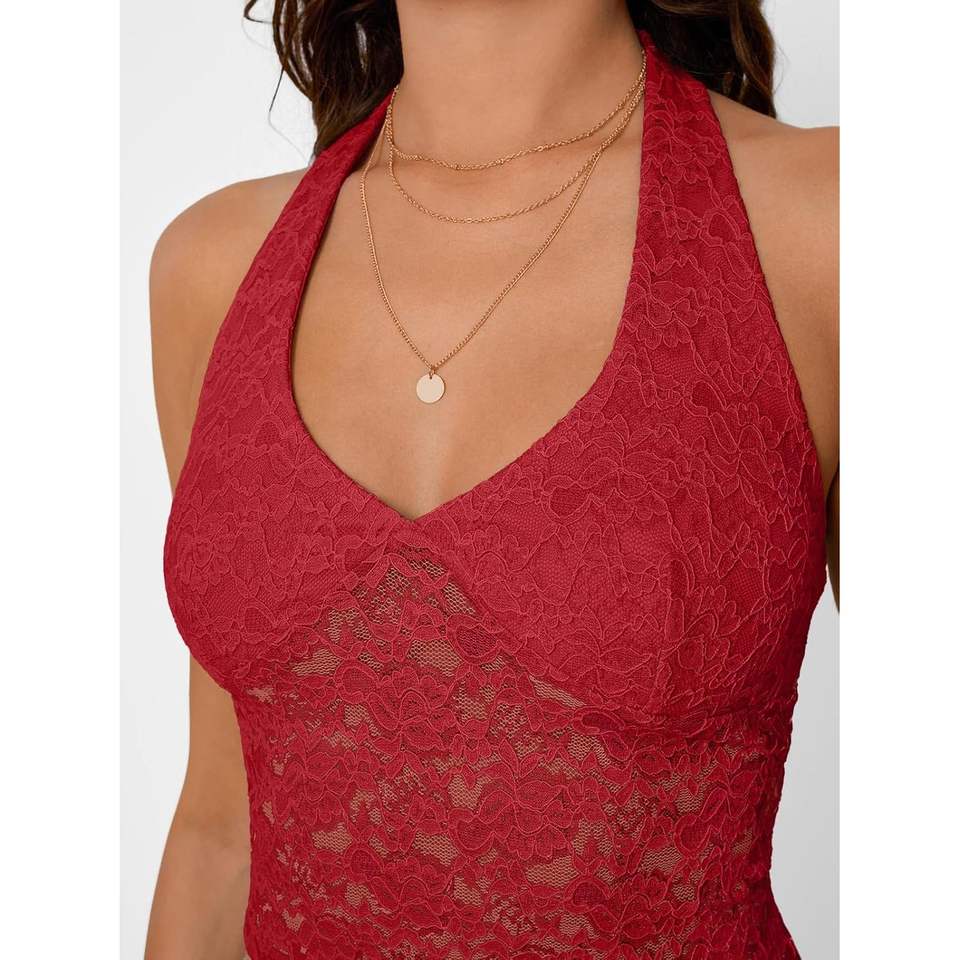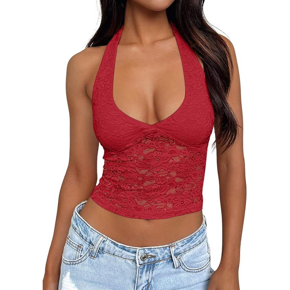 Queen Womens 2025 Custom Crop Top Y2K Sexy Halter Tank with Lace V-Neck Double Lined Sleeveless for Club Outfits