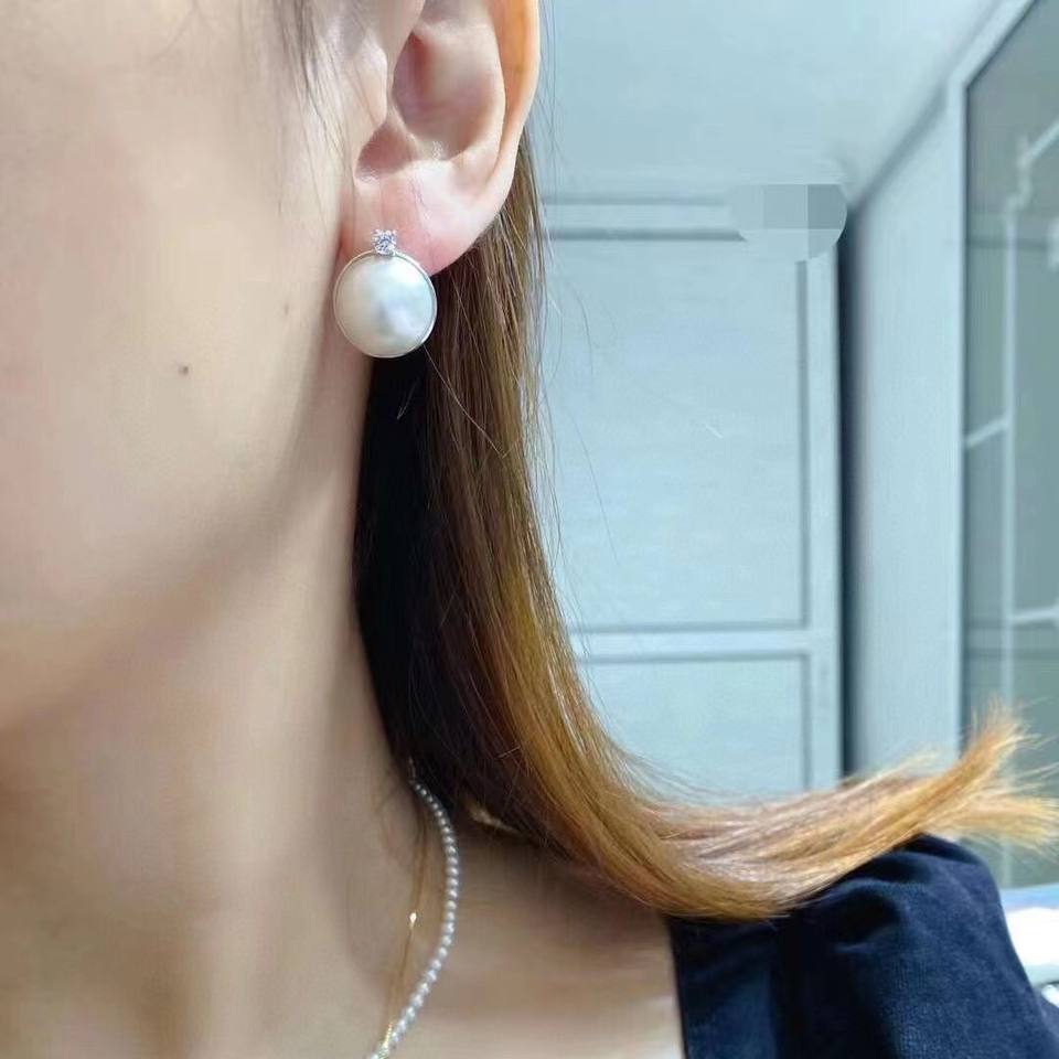 Queen's Classic Sea Pearl Stud Earrings 16-17mm S925 Silver Fine Jewelry