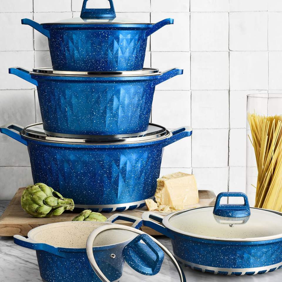 QueenTime Cookware Set 10 Piece Non Stick Diamond Style Oven Safe Casserole Pots With Lids For Stovetop And Oven Use