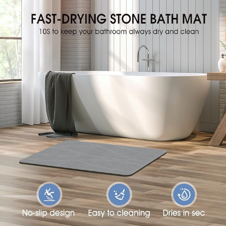 Quick Dry 16X20 Non-Slip Bath Mat Soft Microfiber Absorbent with Modern Design Solid Pattern Diatomite Foot Mat Machine Made
