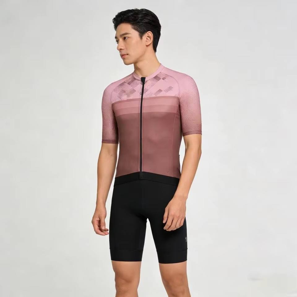 Quick Dry Breathable Gradient Pink Grid Pattern Slim Fit Men Mesh Short Sleeve Cycling Jersey Sublimation Print Road Bike Riding