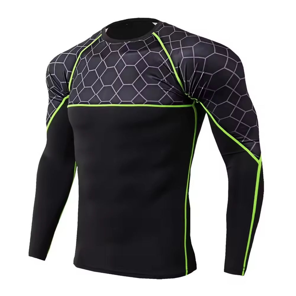 Quick Dry Breathable Men MMA Rashguard Base Layer Athletic Compression Wear OEM Custom Logo Performance Compression Shirt Long