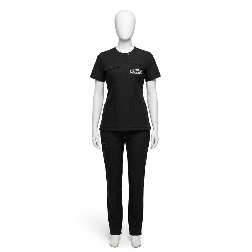 Quick Dry Performance Stretch Spandex Denim Sport Medical Scrub Set Comfortable Top Pant Women's Doctors Nurses Outfit Scrubs