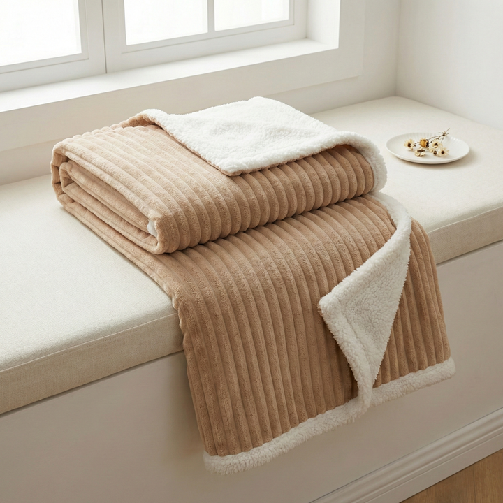 3D Jacquard Ribbed Striped Flannel Fleece Bonded Shu Velveteen Blanket