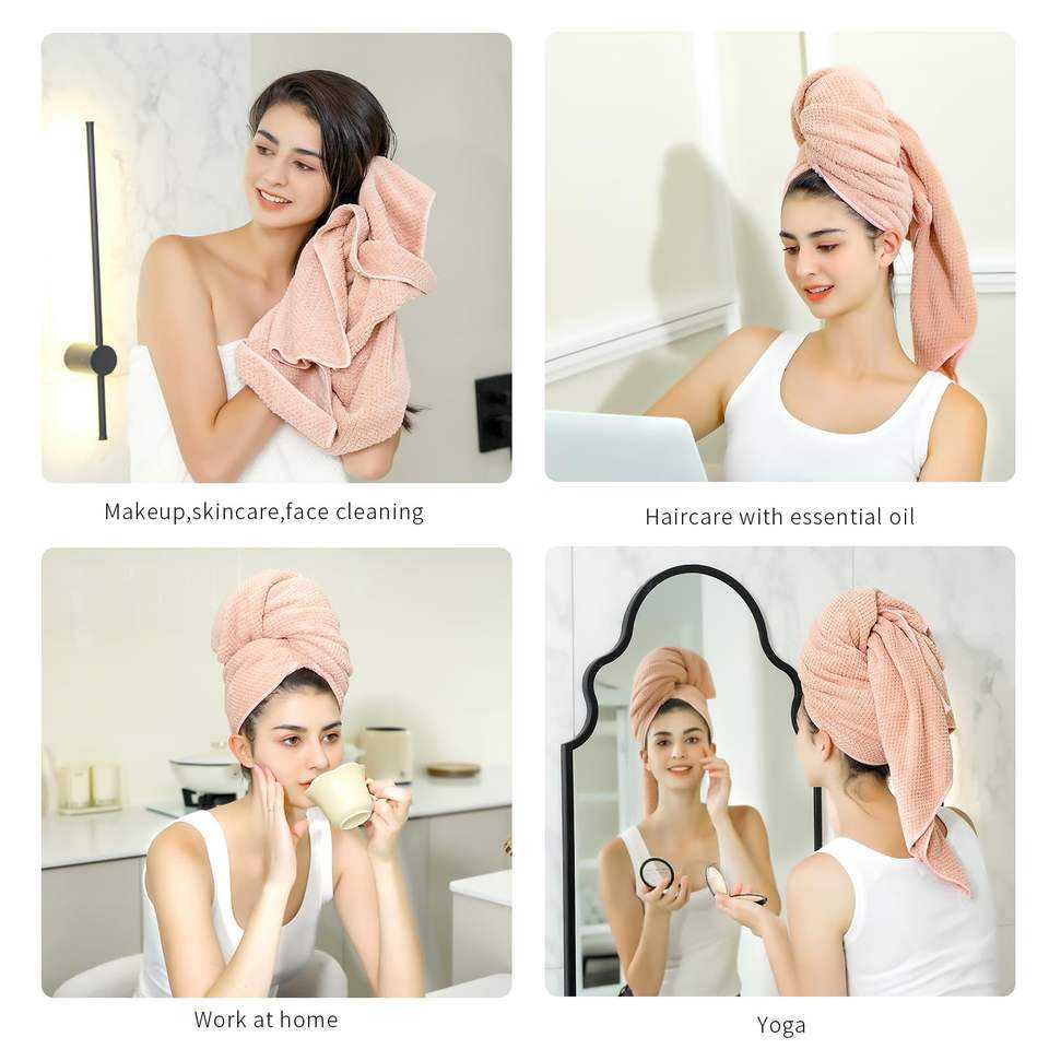 Quick Dry Ultra Absorbent Hypoallergenic Microfiber Hair Turban Towel Rapid Drying Hair Wrap Cap Lightweight Home Use Long Hair