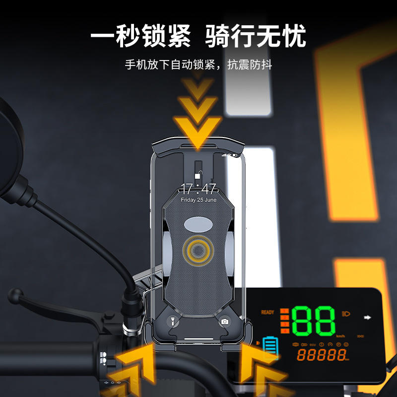 Quick Mount Phone Holder 25.4 Mm Shock Absorbing For Motorcycle Electric Bike Delivery Navigation Handlebar Style