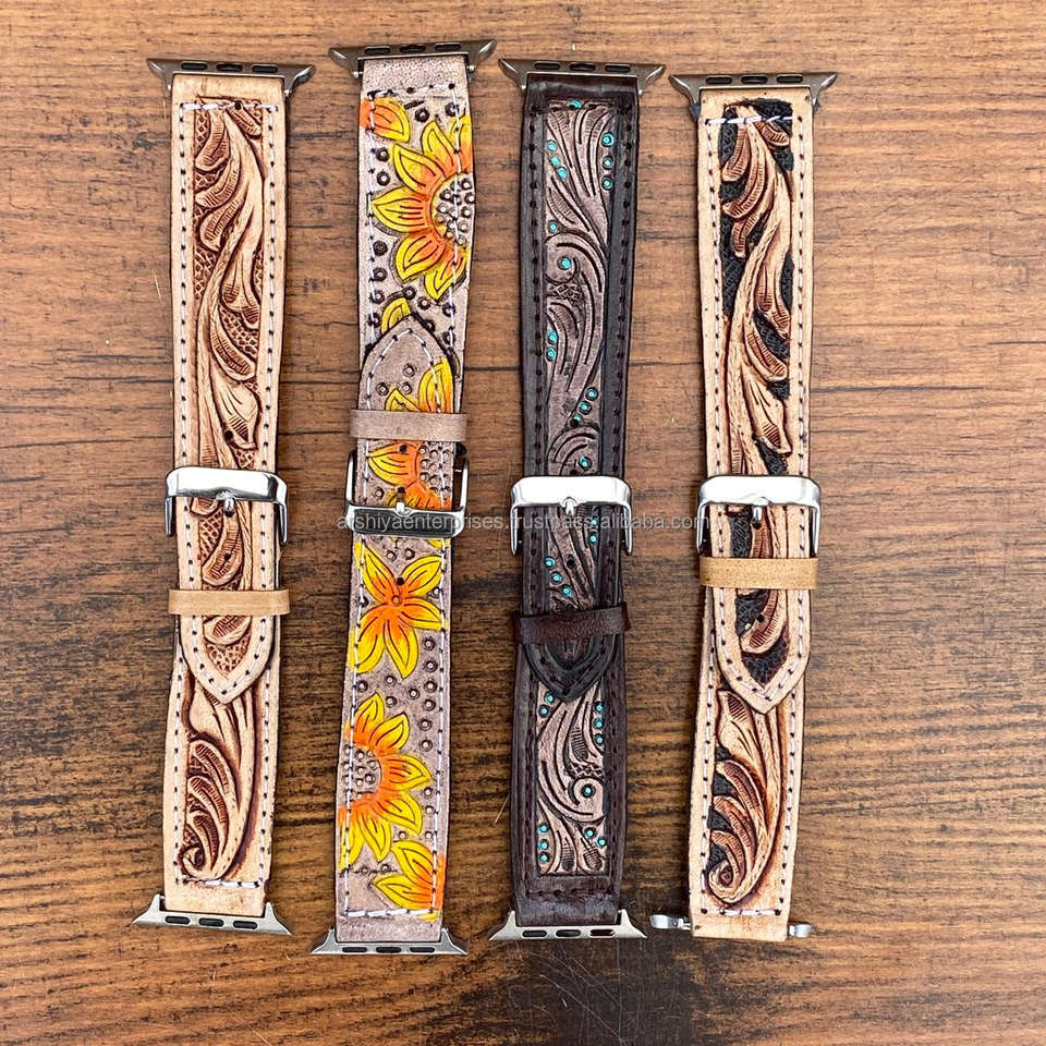 Quick Release Hand Tooled Genuine Leather Watch Band Belt Replacement Sport Watches Crazy Strap Gift Accessory for Men and Women