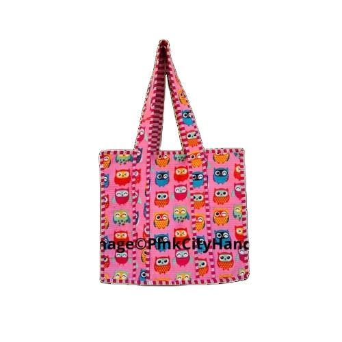 Quilted Beach Bag for Women Shoulder Shopping Bag Hand Block Printed Bags Cotton Custom Tote With Pockets