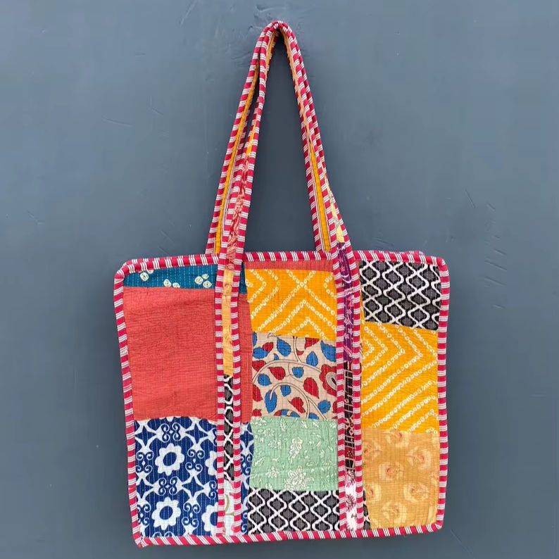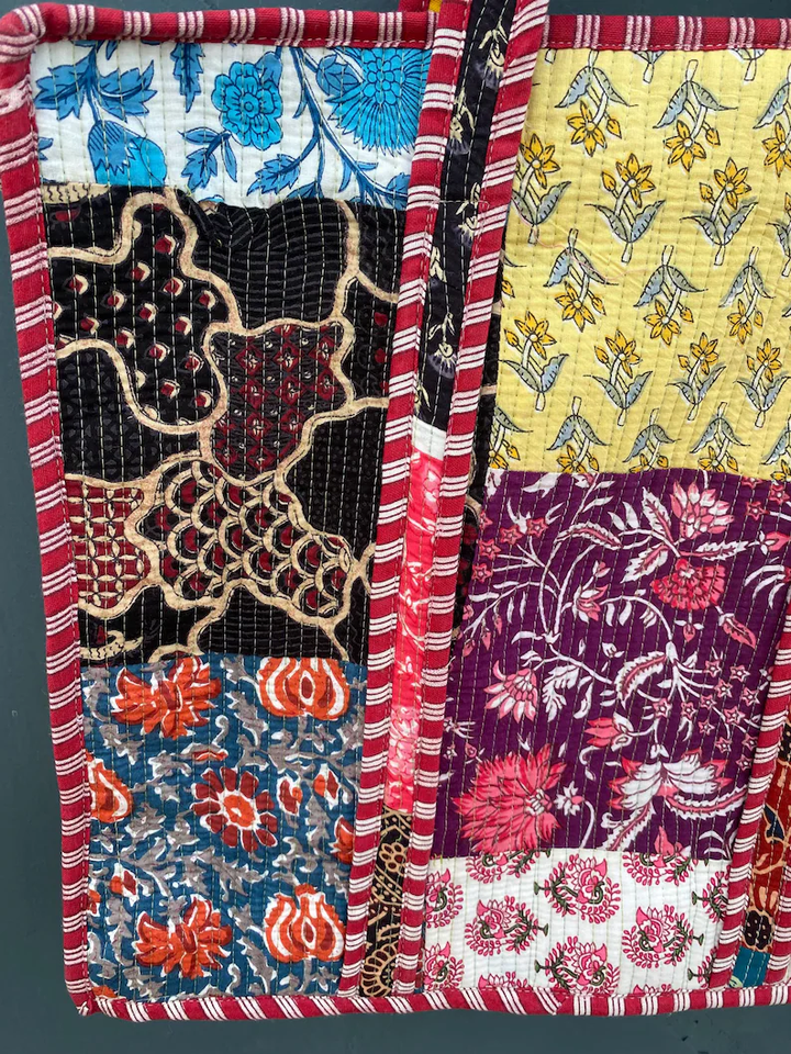 Quilted Cotton Bucket Tote Bag Jungle Print Boho Style Water Resistant Foldable Eco-Friendly Large Capacity