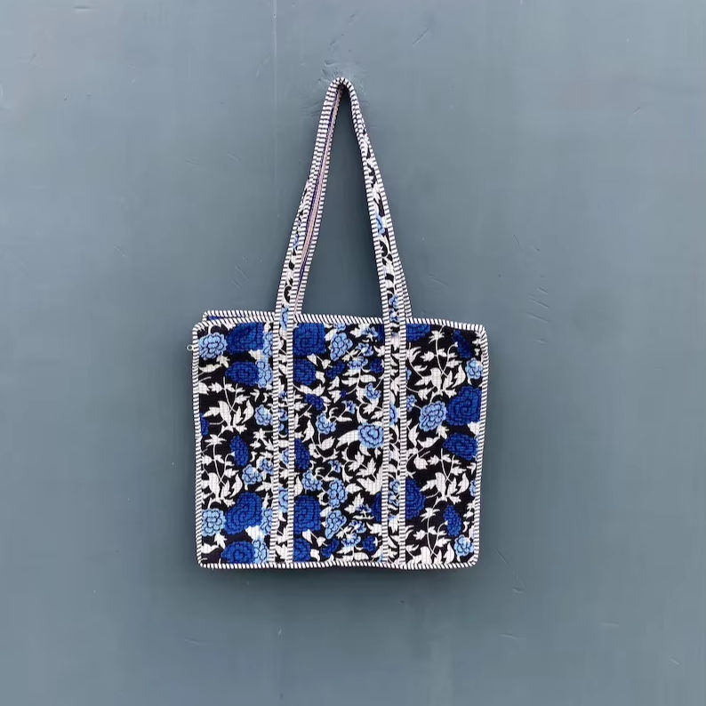 Quilted Cotton Bucket Tote Bag Jungle Print Floral Boho Style Large Capacity Unisex