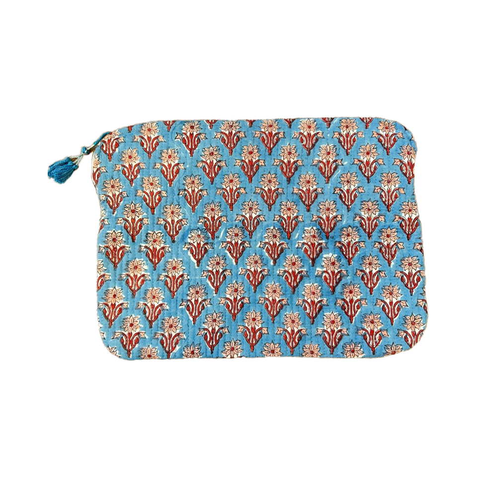 Quilted Cotton Laptop Sleeve Cover Slim Blue Red Peach Floral Design Eco-Friendly Handmade Artist Boho Business College