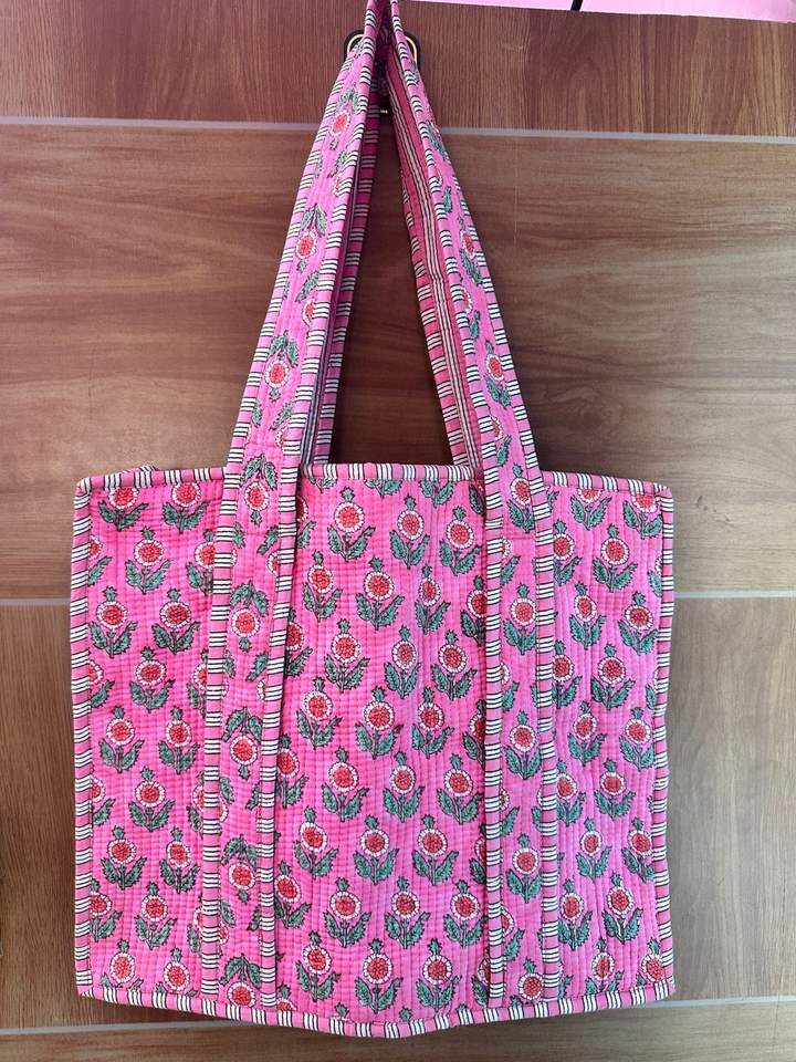 Quilted Cotton Small Tote Bag Eco-Friendly Sustainable Sturdy Grocery Shopping Handmade Vintage Block Printed Boho Summer Winter