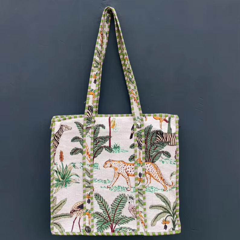 Quilted Cotton Tote Bag Jungle Print Boho Style