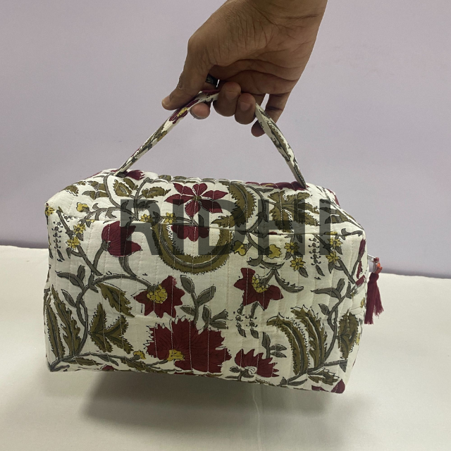 Quilted Cotton Travel for Cosmetic Organizer Bag Zipper Prune Red Large Vintage Style Reusable Storage Pouch for Daily Use