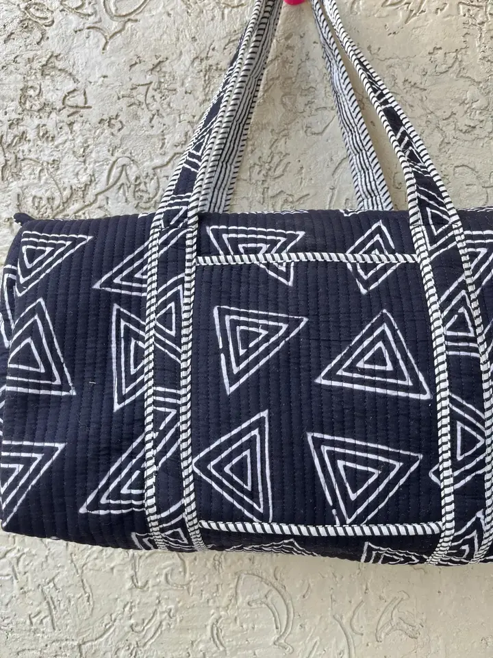 Quilted Cotton Weekender Travel Bag Large Shoulder Tote With Zipper Lightweight Overnight Duffle for Women