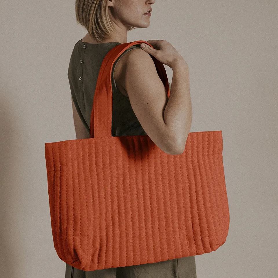 Quilted Custom Large Cotton Canvas Shoulder Bag Zipper Closure Dual Handles Embroidered Modern Design Pearls Bows Letters Chains