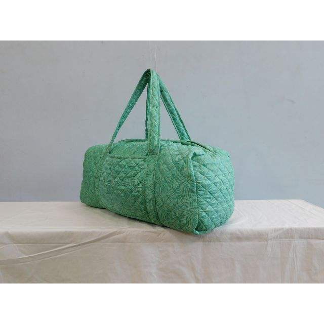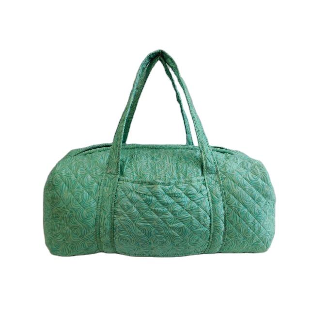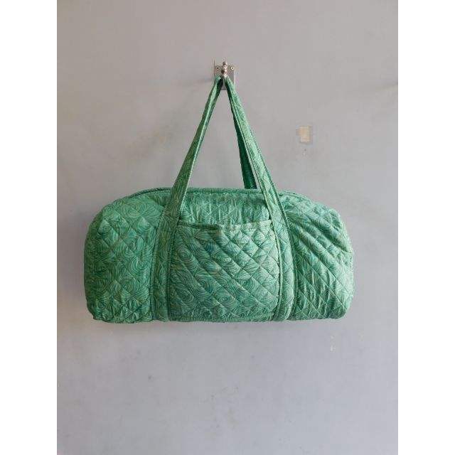 Quilted Duffle Vintage Shoulder Green Bag Silk Floral Handmade Printed Summer Travel Yoga Sport Gym Bag