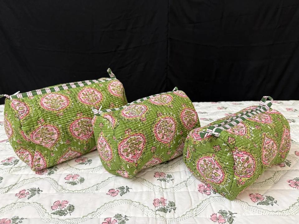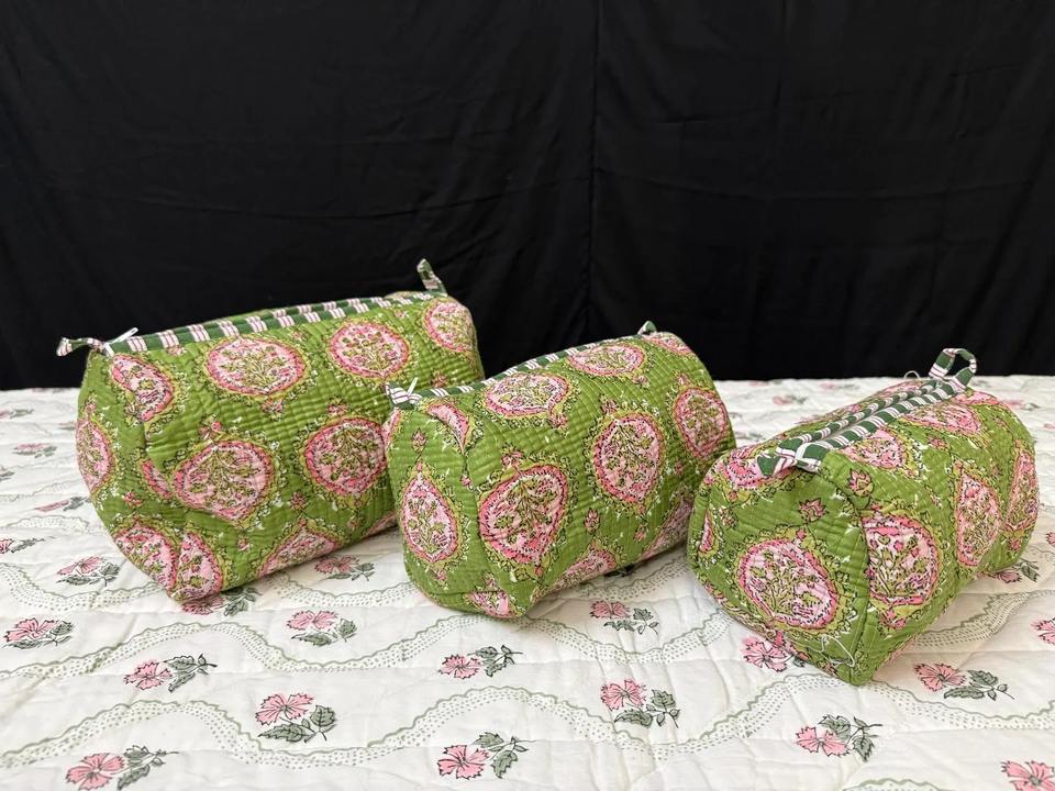 Quilted Eco-Friendly Cotton Vintage Travel Pouch Set Large Capacity Zipper Closure Cosmetic Bags with Floral & Animal Print