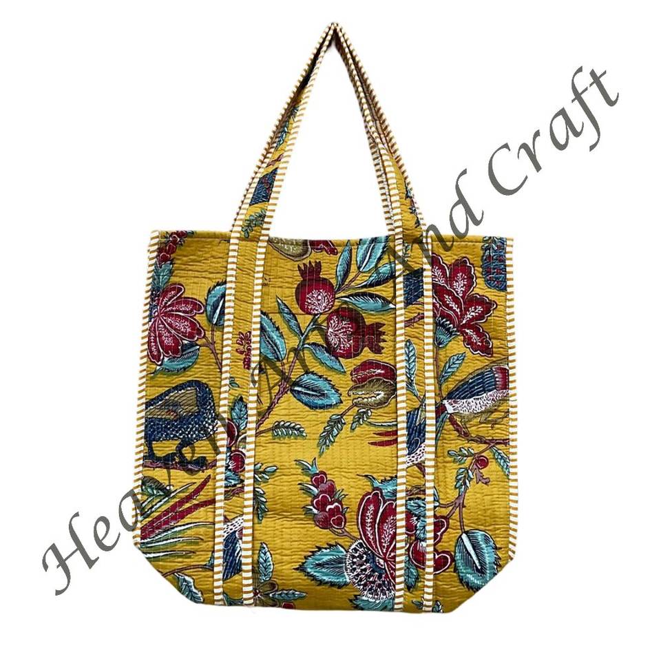 Block Print Cotton Fabric Quilted Tote Bag