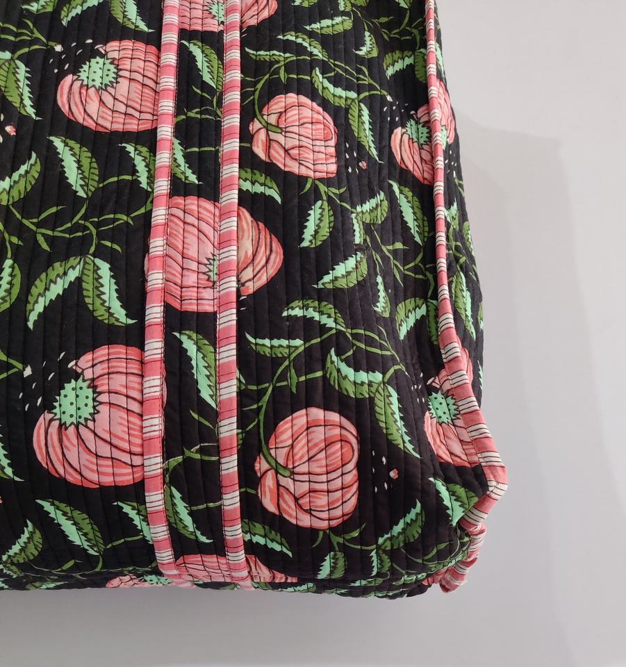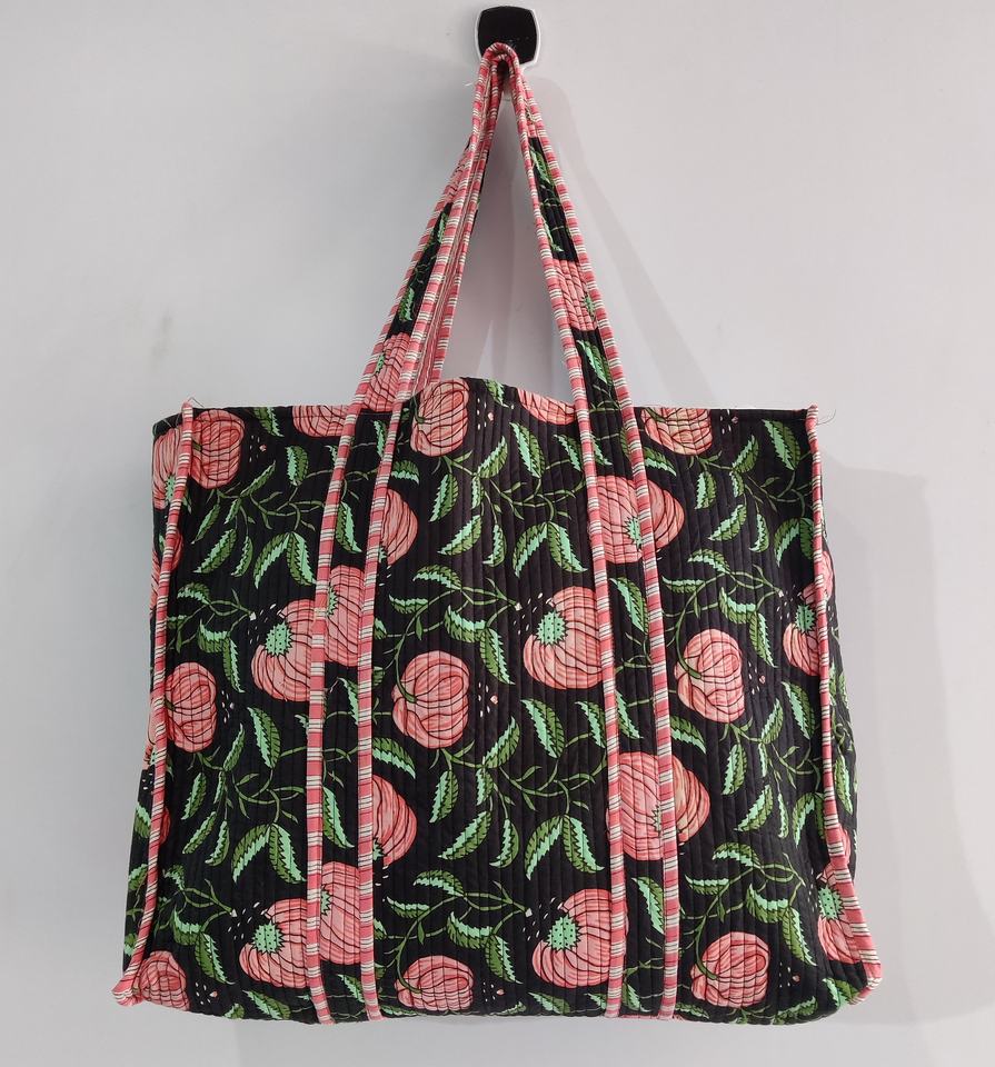 Quilted Floral Print Cotton Tote Shoulder Bag Hand-Printed Reversible Design Eco-Friendly Boho Hippie Market Beach Bag Custom