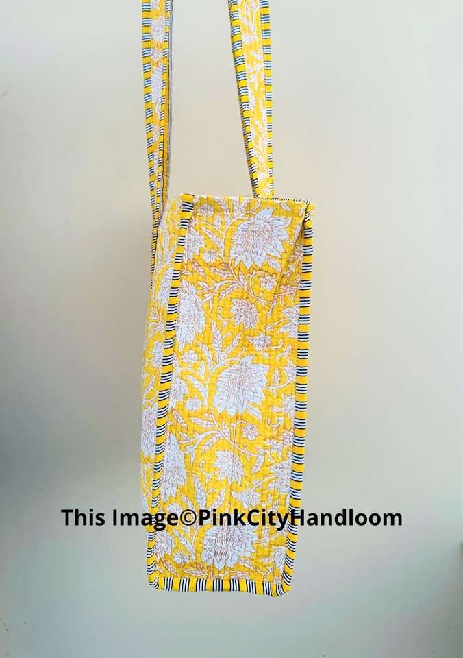 Quilted Large Tote Purse Hand Block Printed Cotton Bohemian Carry Shoulder Bag with Zipper Closure for Summer Winter Spring