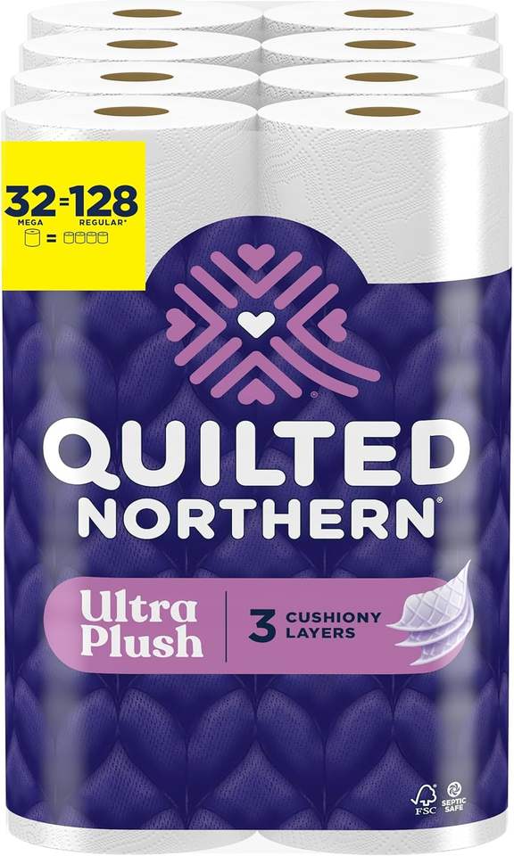 Quilted Northern Ultra Plush Toilet Paper, 32 Mega Rolls = 128 Regular Rolls, 3X Thicker*, 3 Ply Soft Toilet Tissue