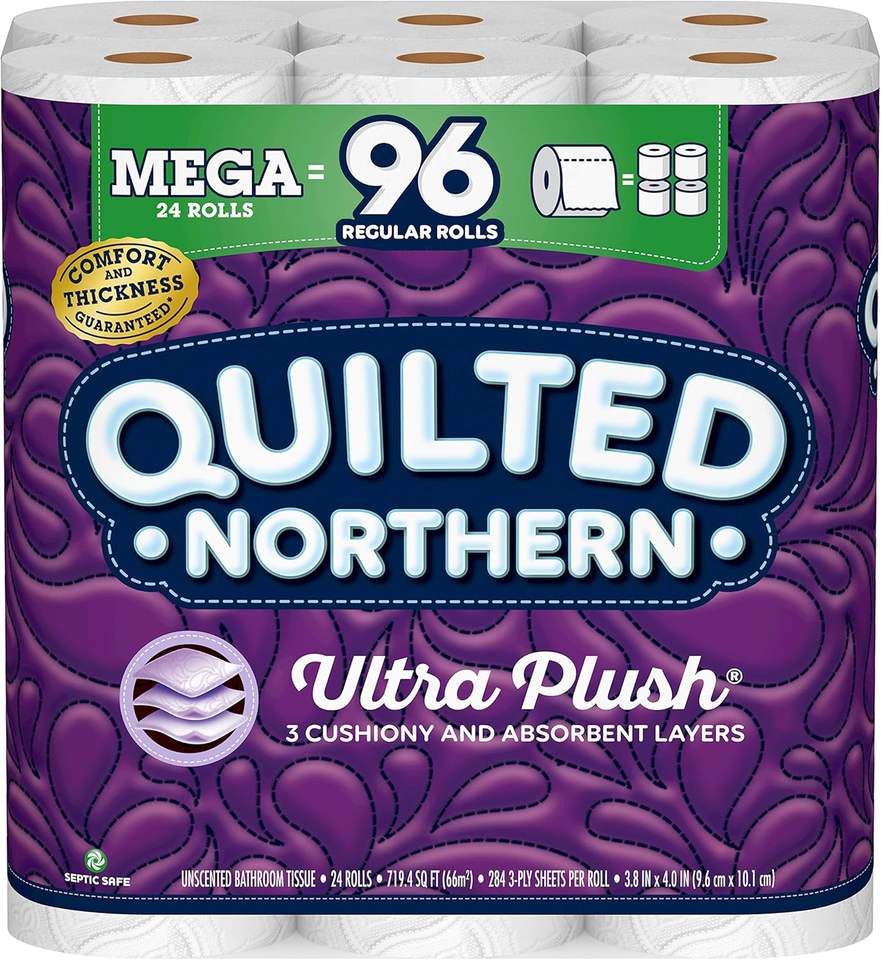 Quilted Northern Ultra PlushToilet Paper, 24 Mega Rolls = 96 Regular Rolls, 3-Ply Bath Tissue