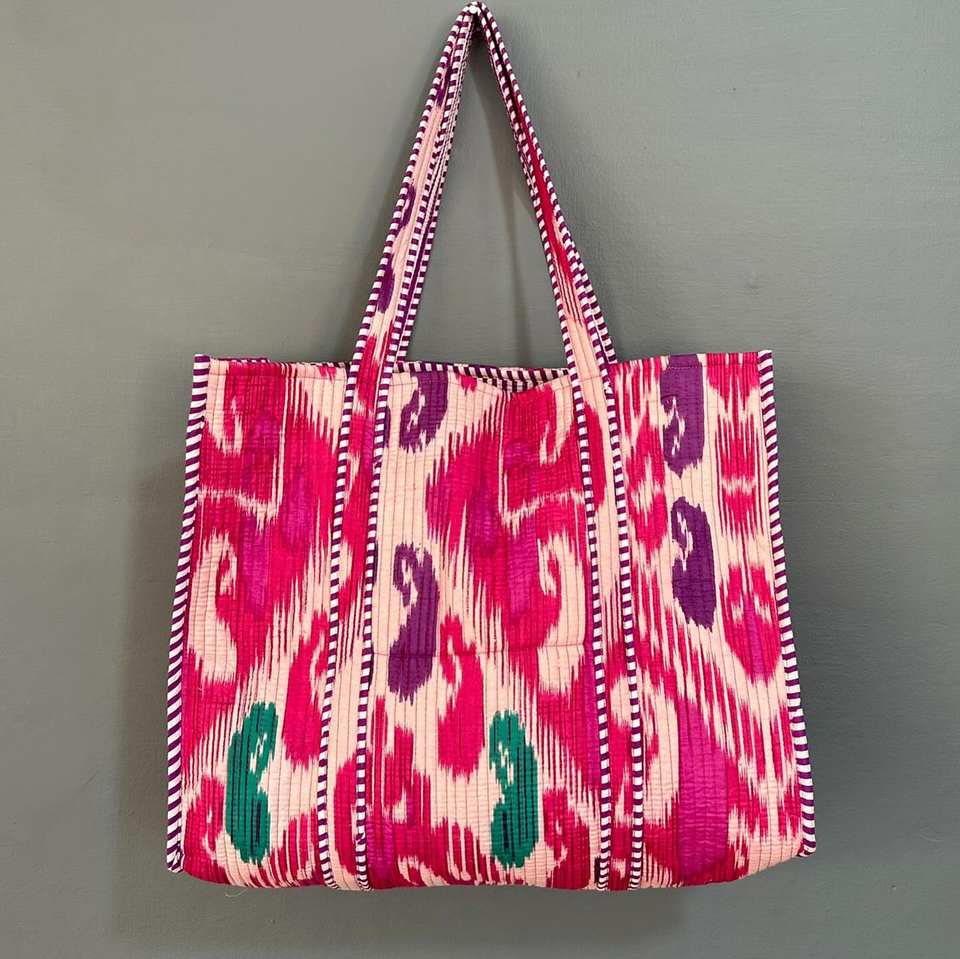 Quilted Printed velvet Carry Handbags Indian Hand Block Printed velvet Quilted Bag