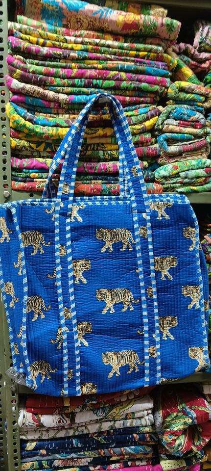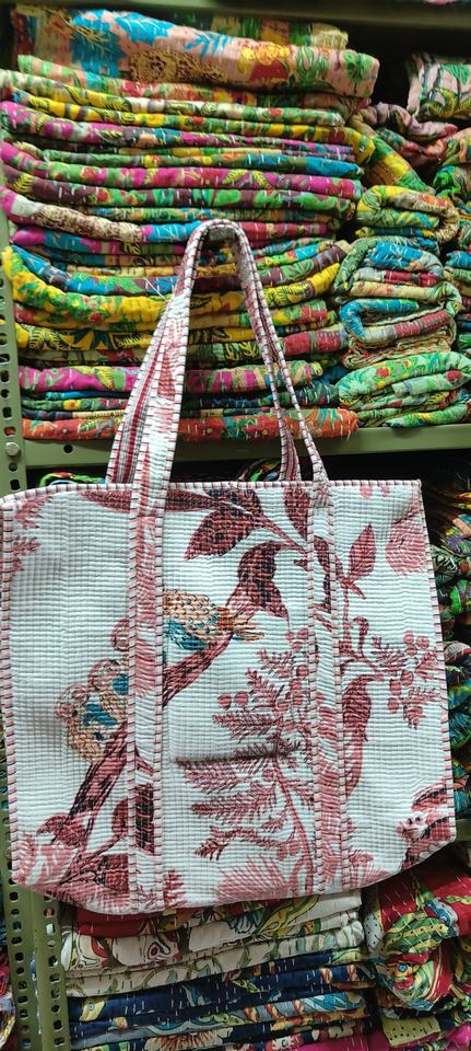 Quilted Tote Bag Cotton Floral Printed Women Shoulder Tote Bag Cotton Handmade Market Bag Travel Shopping