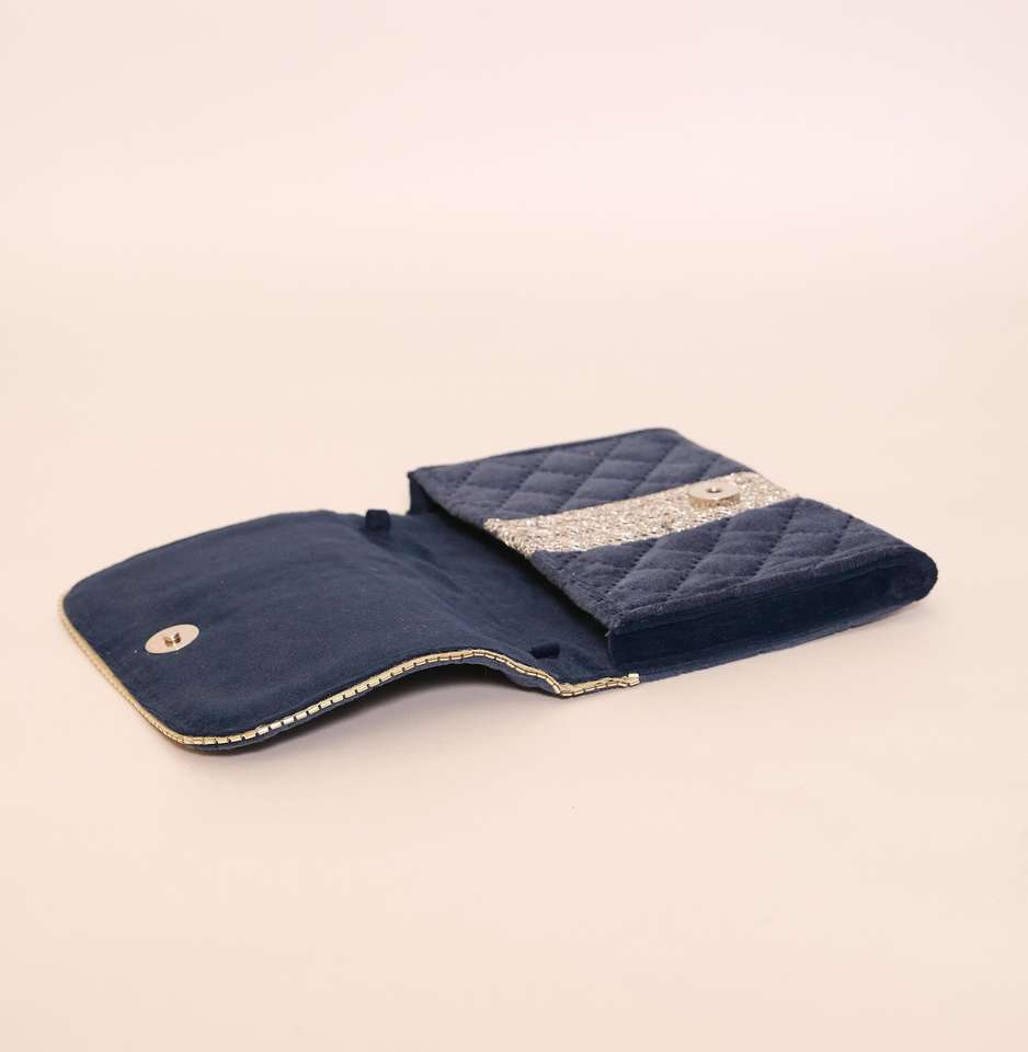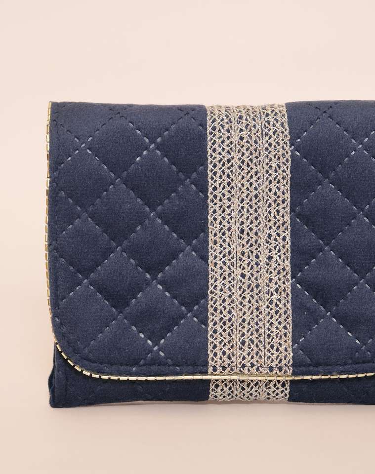 "Quilted Velvet Clutch Bag with Silver Lace Accent | Handmade Soft Fabric Evening Purse | Elegant Party & Wedding Handbag"