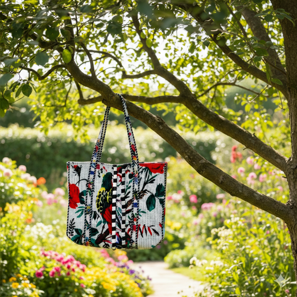 Quilted Velvet Gray Reversible Vintage Bohemian Winter/Spring/Summer Lightweight Canvas Lining Zipper Closure 18" Inches High