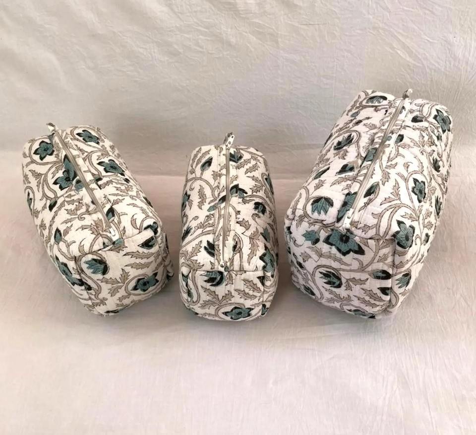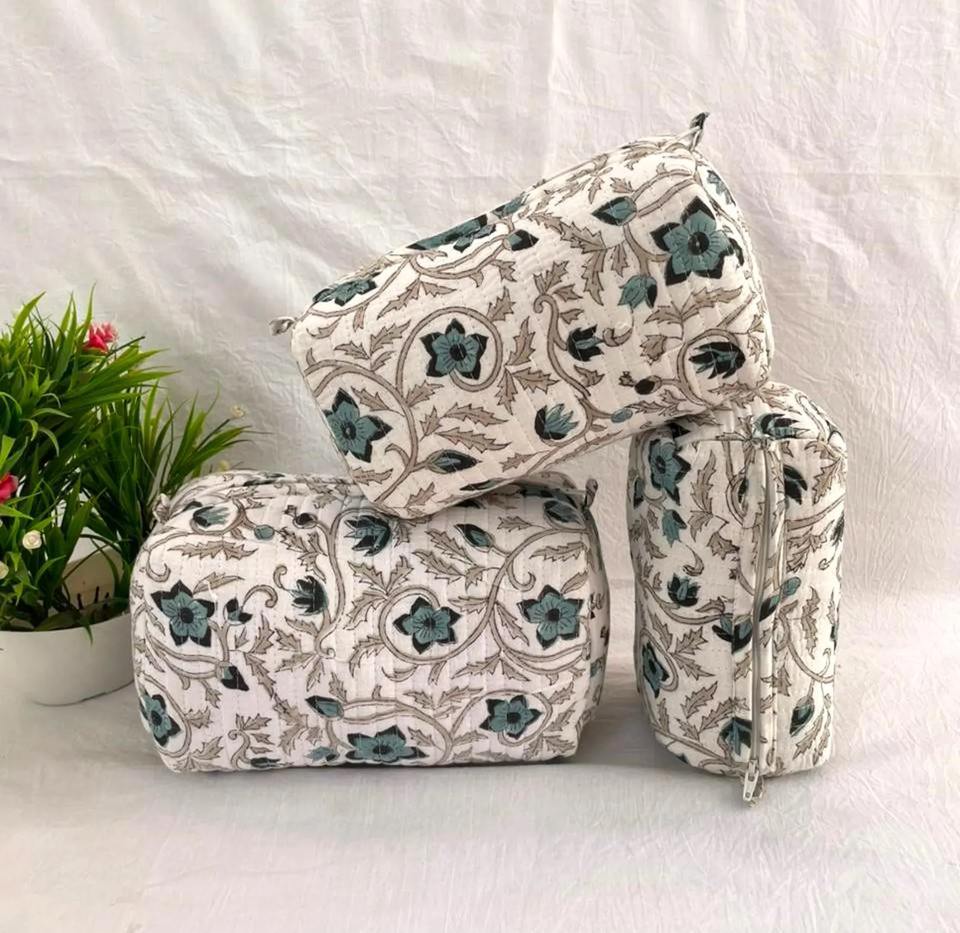 Quilted Vintage Eco-Friendly Cotton Water Resistant Handmade Large Zipper Cosmetic Travel Case for Makeup Storage