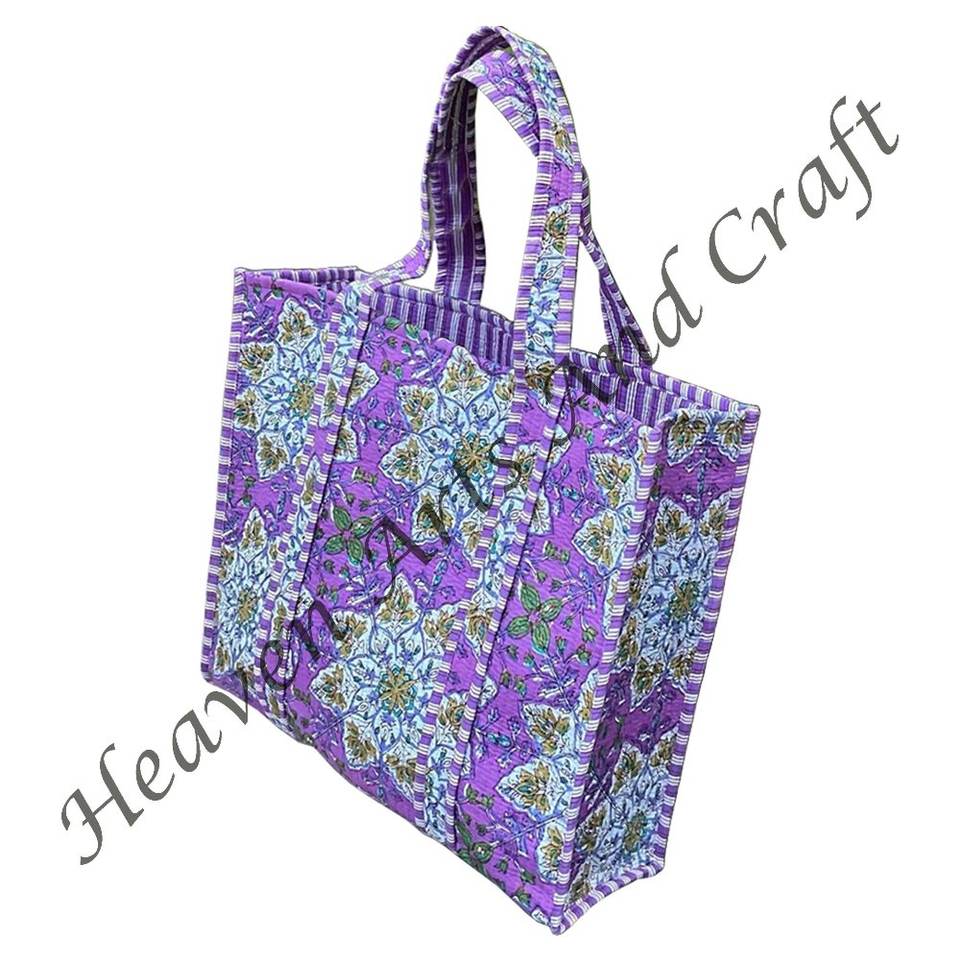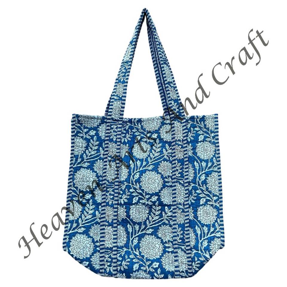 Quilted Women Tote Handbag Indian Cotton Hand Block Printed Shopping Carry Bags Indian Hand Block Printed Cotton Quilted Indian