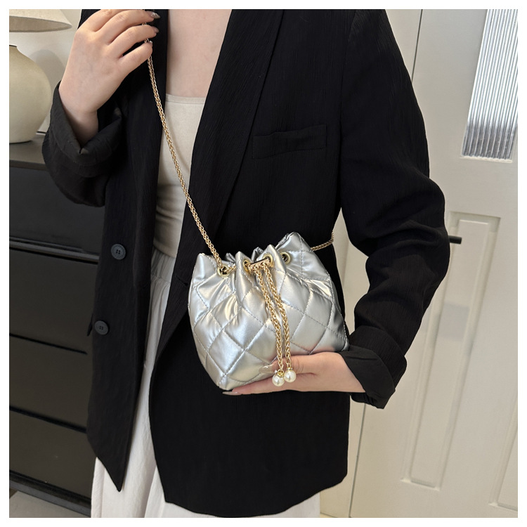 Quilted crossbody/shoulder bucket bag, simple new style, chain strap, trendy casual bag