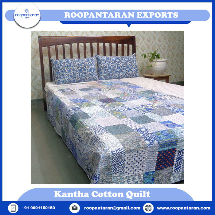 Latest Stylished Quilts Kantha Indian Hand Block Printed Cotton Patchwork Twin Size Kantha Quilt for Sale at Lowest Price