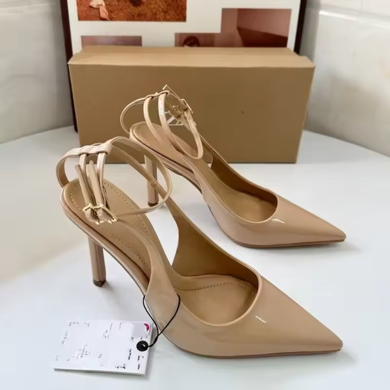 QuiteS Women's Thin Pointed Toe Belt Buckle Medium Heel Sandals Ladies Party Shoes Stiletto PU Leather High Heel Shoes Pumps