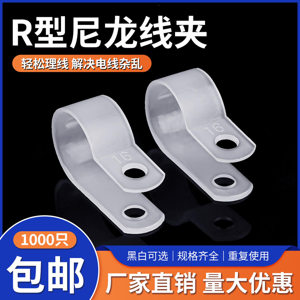 R-Type Nylon Cable Clip U-Type Cable Management Clip Plastic Cable Fixing Clip with Rubber and Steel Material