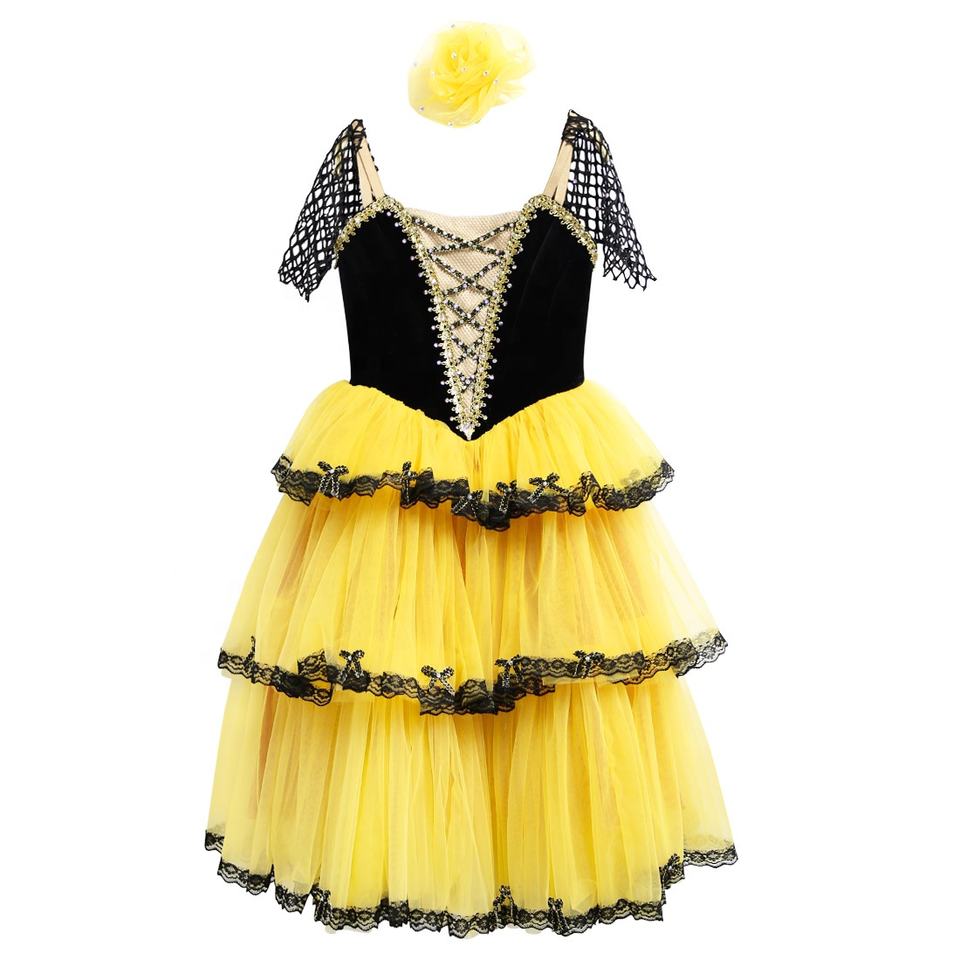 R0030 Manufacturer Yellow Cake Dress Kitri Romantic Tutu Dance Stage Costumes