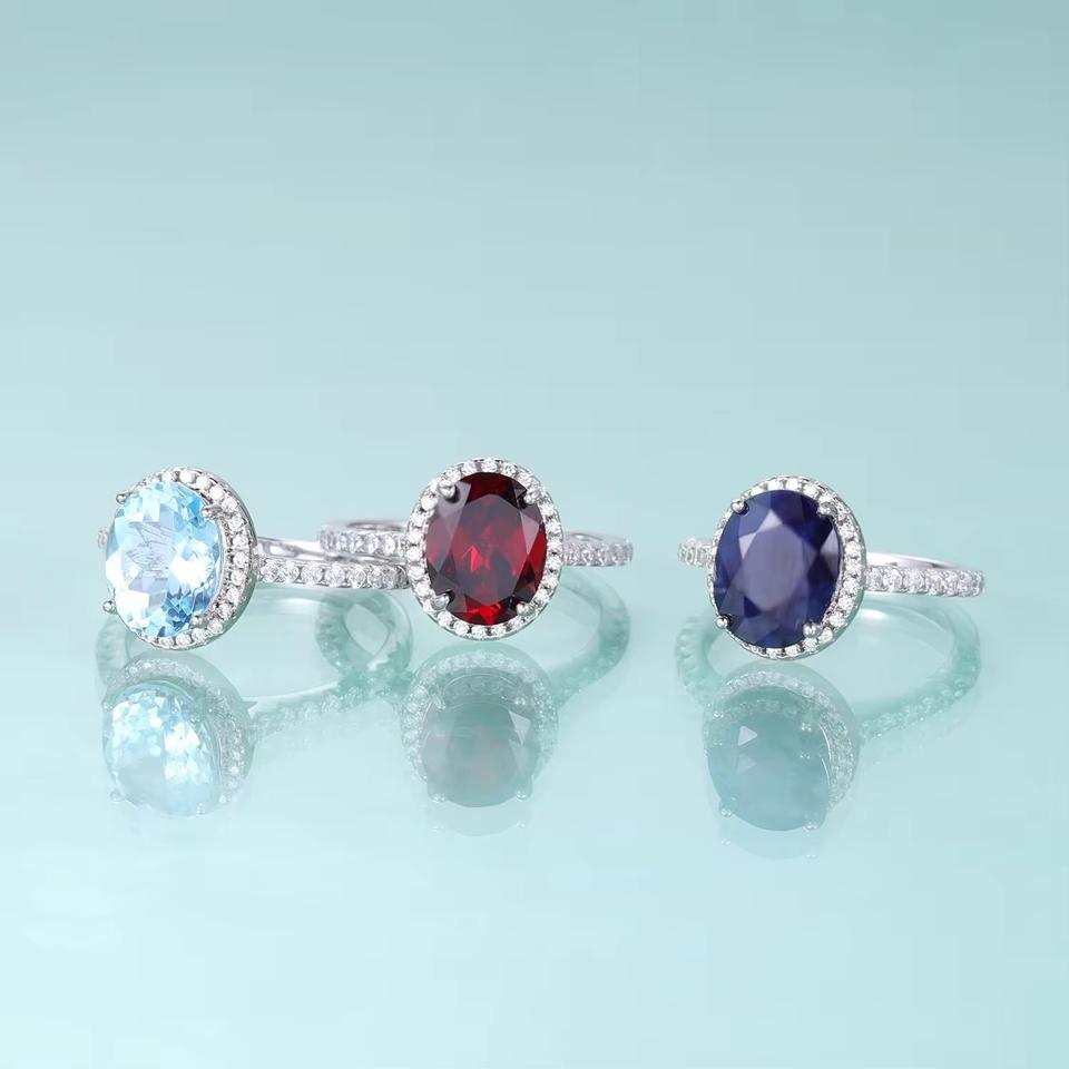 925 Sterling Silver Jewelry R014 Natural Gemstone Sky Blue Topaz Sapphire Ruby Amethyst Opal Crystal Ring Wholesale Thailand