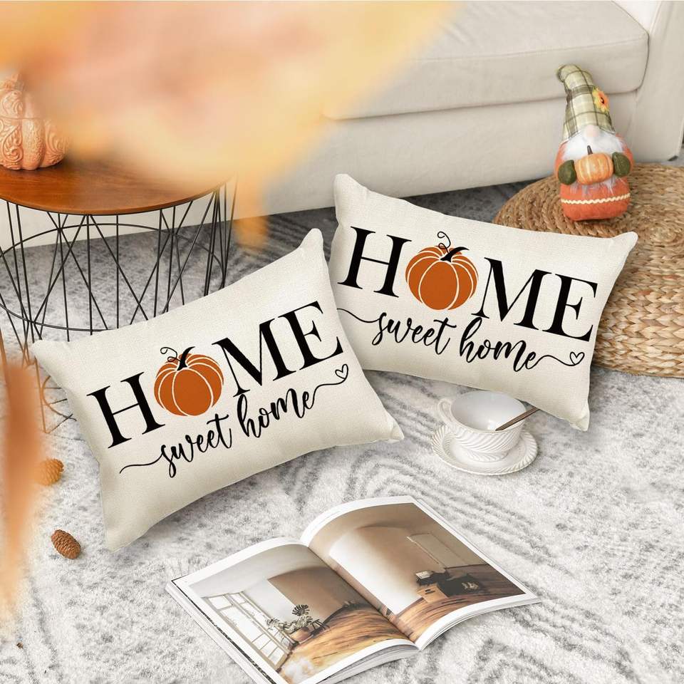 RABUSOFA 12x20 Inch Fall Decorative Throw Pillows Thanksgiving Orange Pumpkin Pillow Covers Autumn Outdoor Lumbar Cushion for