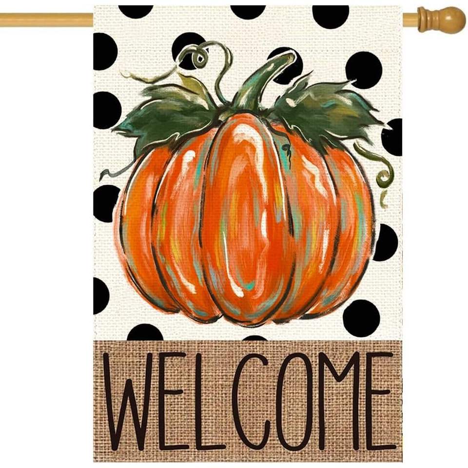 RABUSOFA Fall Pumpkin Double Sided 28x40 Outdoor Yard Large Lawn Flag Orange 28\" X 40\" Welcome Autumn Thanksgiving Harvest