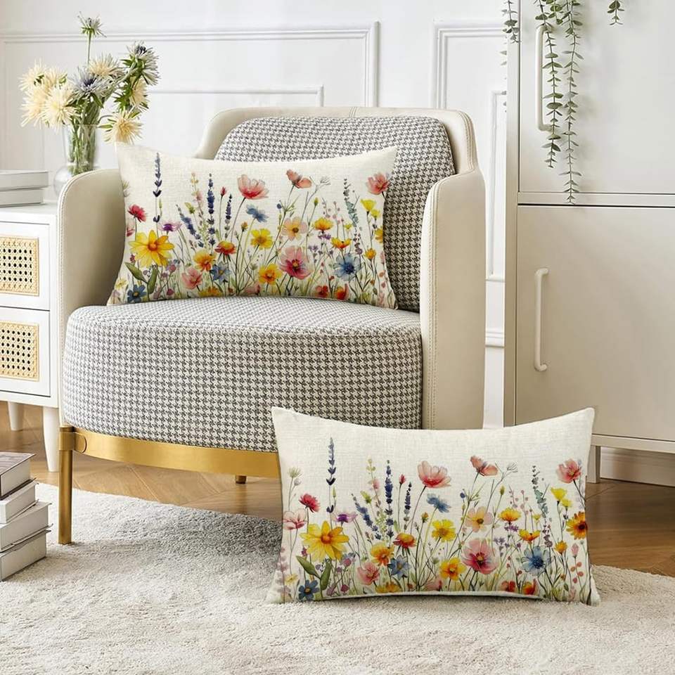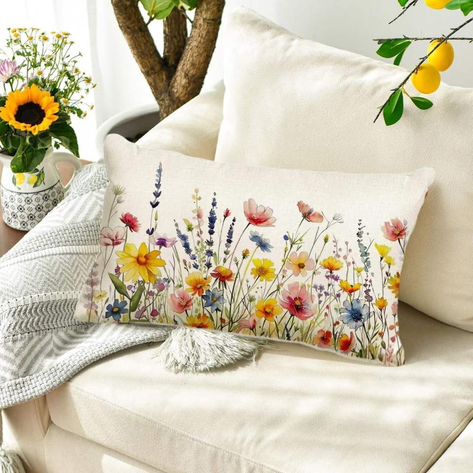 RABUSOFA Floral Decoration 12x20 Inch Summer Pillow Cover Single Home Sofa Couch Lumbar Cushion Case for Seasonal Spring Decor