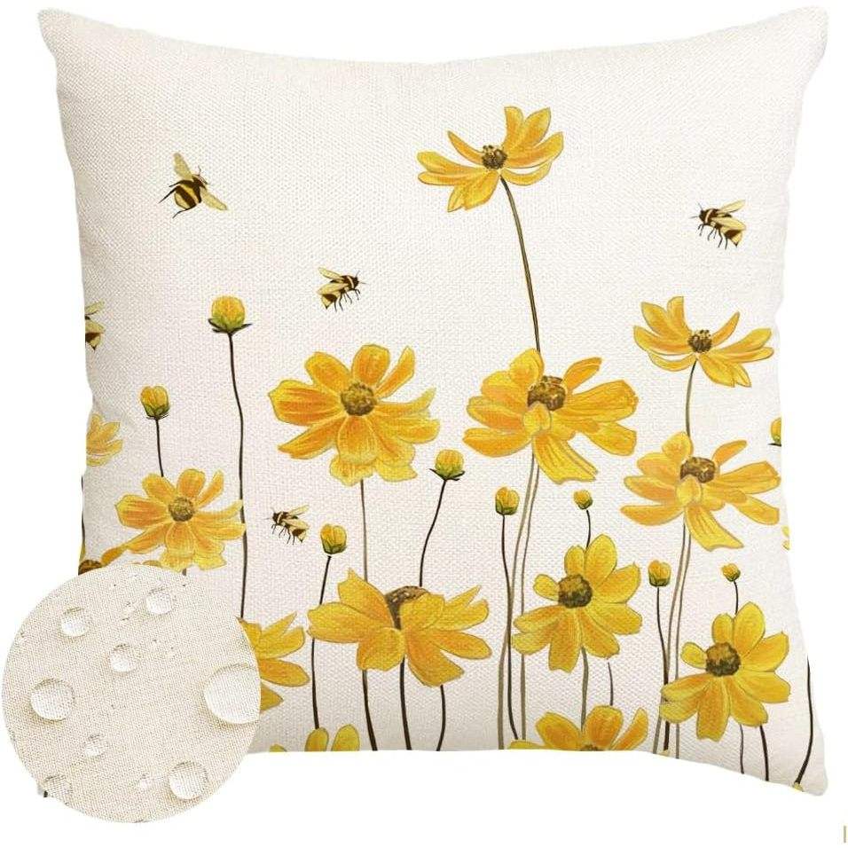 RABUSOFA Summer Outdoor 18x18 Waterproof Yellow Daisy Throw Pillow Covers Spring Decorative Farmhouse Cushion Case for Furniture