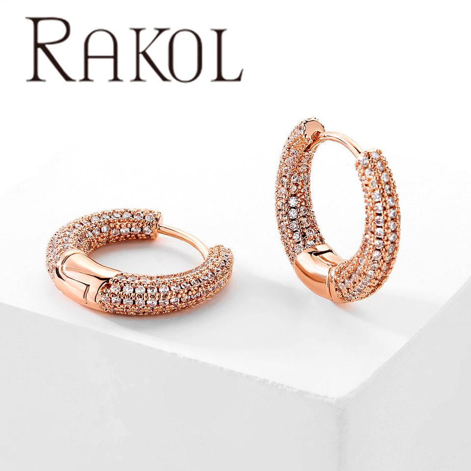 RAKOL EP1042 Simple Hip-Hop Full Stone Fashion Small Hoop Zircon Gold-Plated Earrings for Women and Girls